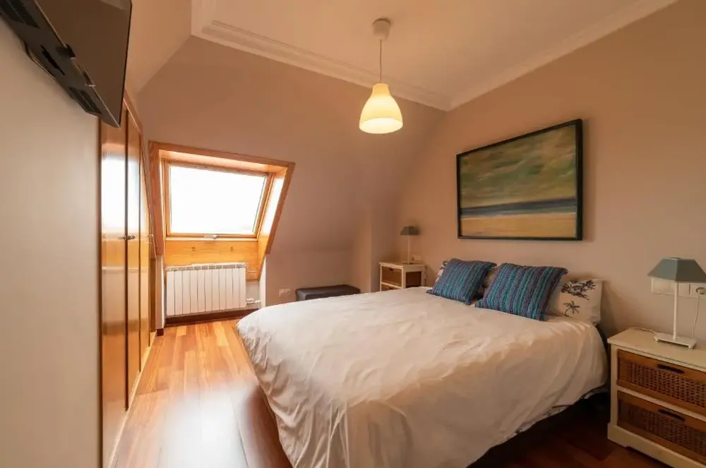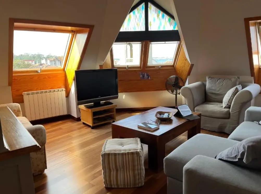 Ático Vilanova offers a spacious and well-maintained attic apartment located at Avenida Juan Carlos I 3, Vilanova de Arousa, Spain. The property features free parking, facilities for disabled guests, a bar area, complimentary WiFi, family rooms, and non-smoking accommodations. Guests can enjoy stunning views from the unit and appreciate its peaceful setting away from busy areas. Nearby attractions include El Terrón Beach just 900 meters away, Playa del Terron 1.5 kilometers distant, and several other nearby beaches within easy reach. The location provides convenient access to local landmarks such as Casa Museo Valle Inclan at 150 meters, Reiz at 400 meters, and Meson O Timon located 350 meters away. With its central position near various dining options like A Bodega de Moncho which is 200 meters from the property, Ático Vilanova ensures visitors have ample opportunities to explore both coastal and cultural sites.